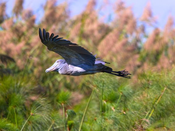 Of all the wildlife that call the Bangweulu Wetlands home, none captures the imagination quite like the shoebill. Standing over a metre tall, with an enormous bill shaped like a Dutch clog, this bird looks more like a relic from the age of dinosaurs than a creature of the modern world. Its appearance is striking, with grey-blue feathers, piercing eyes, and a slow, deliberate way of moving.